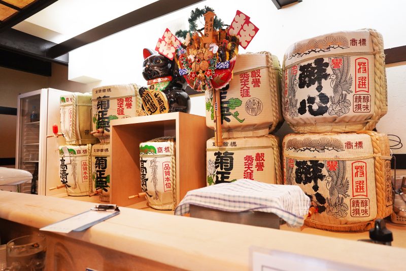 昭和レトロな雰囲気漂う御徒町「全国銘酒 たる松本店」。大きな酒樽から注ぐ樽酒や純米酒と、刺身・焼き物など酒に合う肴を味わえる老舗の大衆酒場。