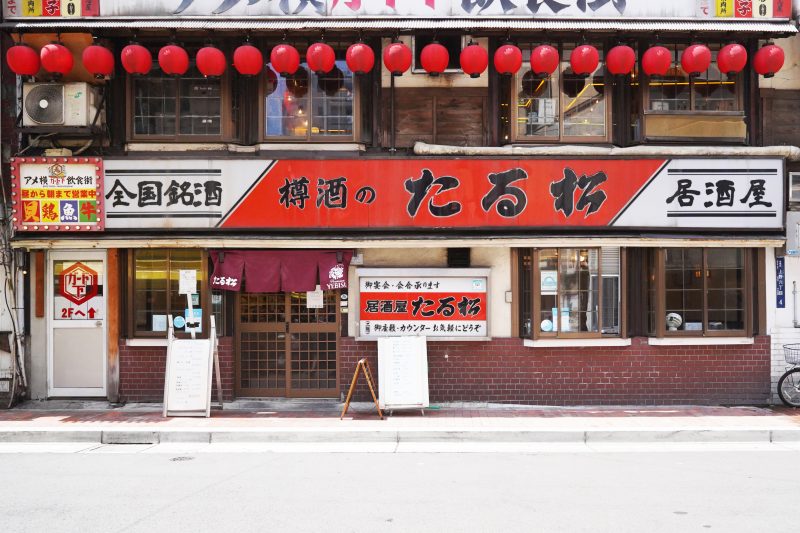 大きな酒樽が目を引く昭和の酒場「全国銘酒 たる松本店」