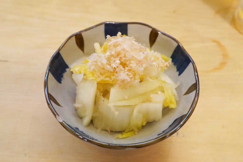とりあえずのおつまみとして、これほど優れた一品はないのではないかと思っている白菜漬。なんてことのない予想どおりの味わいだけど、これがいいんだよね。丁寧に漬けられていることが感じられるのは、お店の歴史や雰囲気によるものだろうか。