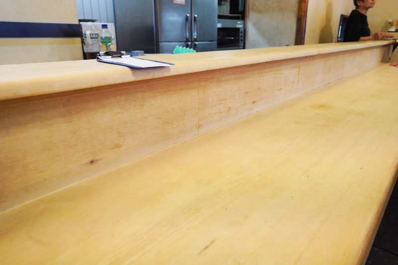 私は幸運にも、樽酒が鎮座するほぼ正面のカウンター席に座ることができた。白木のカウンターは手触りもなめらかで、これから出てくるであろうお酒やおつまみ、酒器や器を引き立たせるに違いない。