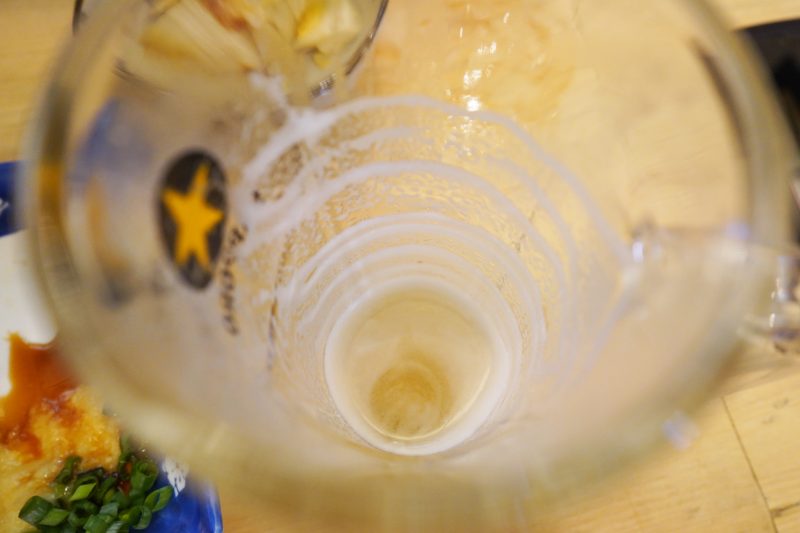 呑み進めるうちに見えてきたエンジェルリング。ビールサーバーやジョッキがしっかりと清潔に管理されていることの証左だ。きっとこういうところなんですよ、長く続いている酒場の小さいけど大切なこだわり。
