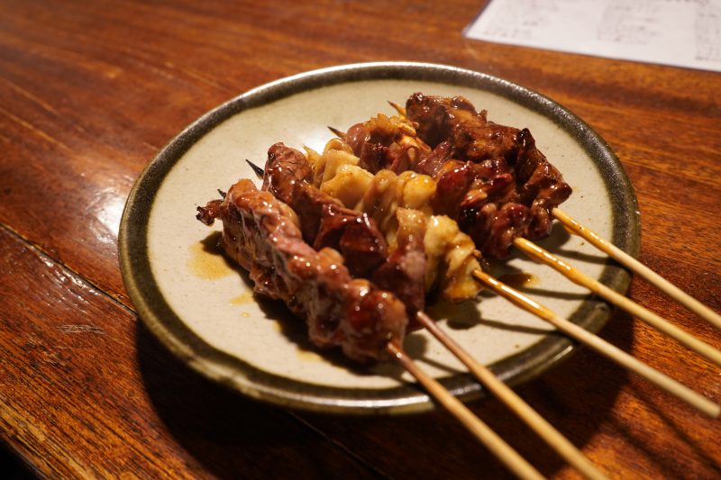 お通しの切り干し大根をアテに瓶ビールをちびちびと呑んでいるところへ、店の名物として掲げられるもつ焼きがやってきた。店の入口の脇、香り高い煙を外へ排出している焼き場で焼かれていたものだ。甘辛いタレの香ばしさ、串5本の盛り合わせは少しやんちゃが過ぎたかなとは思ったのだが、その味わい深さにあっという間に平らげてしまった。